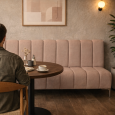 کاناپه ی رستورانی یا مبل رستورانی، با طرح خطی، مشابه نشیمن اتوبوس های قدیمی است.. مناسب برای تجهیز رستوران ها و کافه ها، به موازات دیوار قرار میگیرد و حداکثر نشیمن را برای فضا ایجاد می کند. اسکلت این کاناپه، به گونه ای صنعتی از چوب ساخته شده و با فوم و اسفنج مبلی روکش شده و نهایتا با پارچه پوشش داده شده. این پارچه می تواند به انتخاب سفارش دهنده تغییر کند.